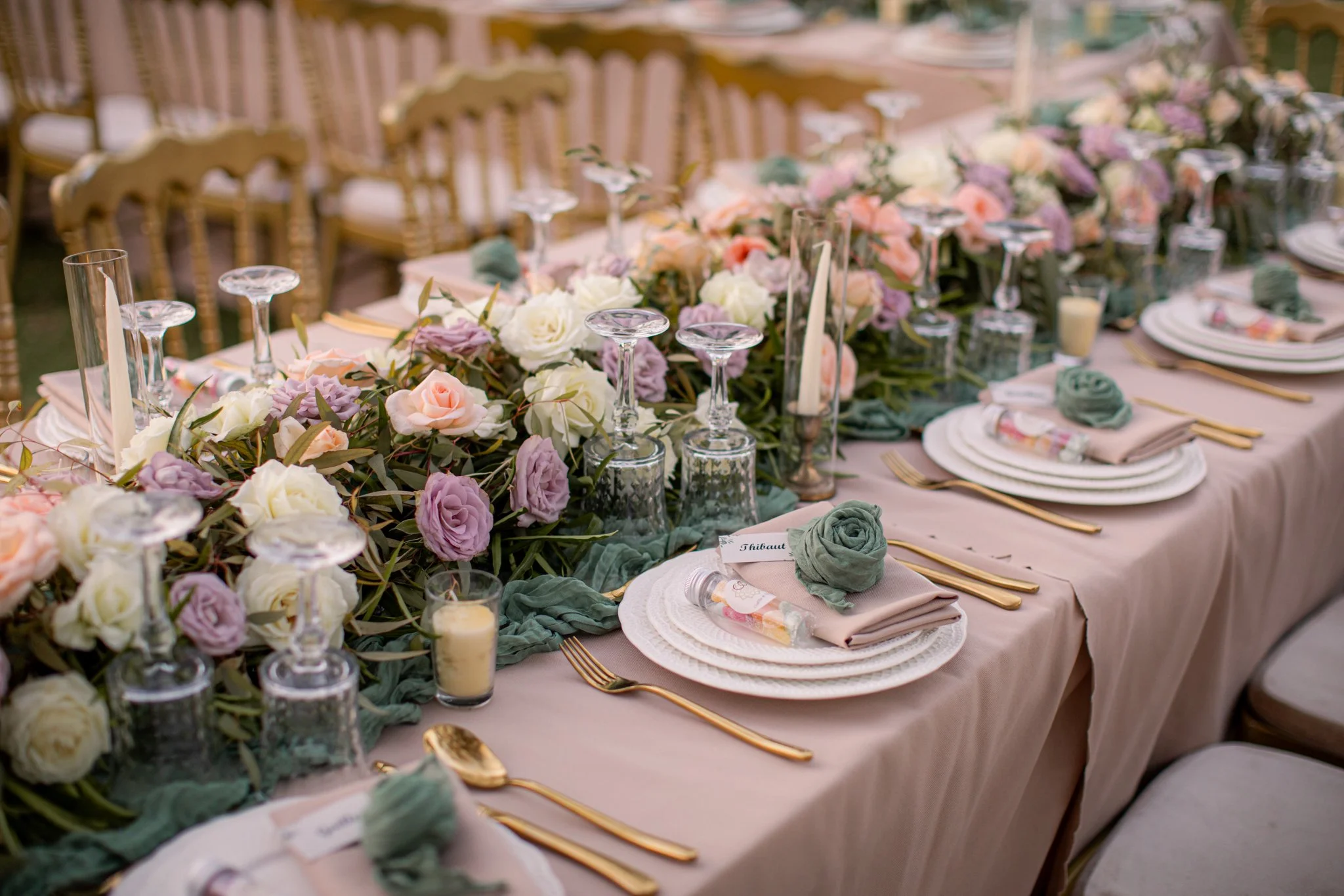 The celebration began the day before with a Moroccan Arabian welcome party in the garden, where guests gathered under the olive trees to share music, tradition, and warm moments together. Soft light filtering through the branches set a relaxed and joyful tone for the days to come.